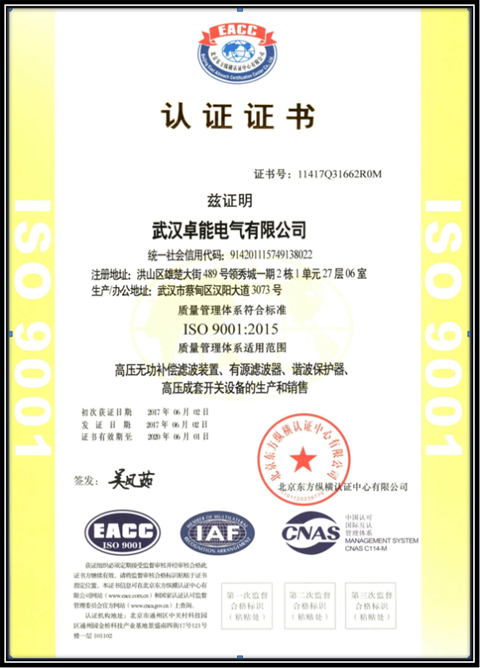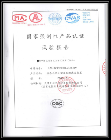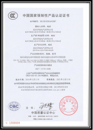 動態(tài)無功補(bǔ)償及有源濾波裝置認(rèn)證證書
