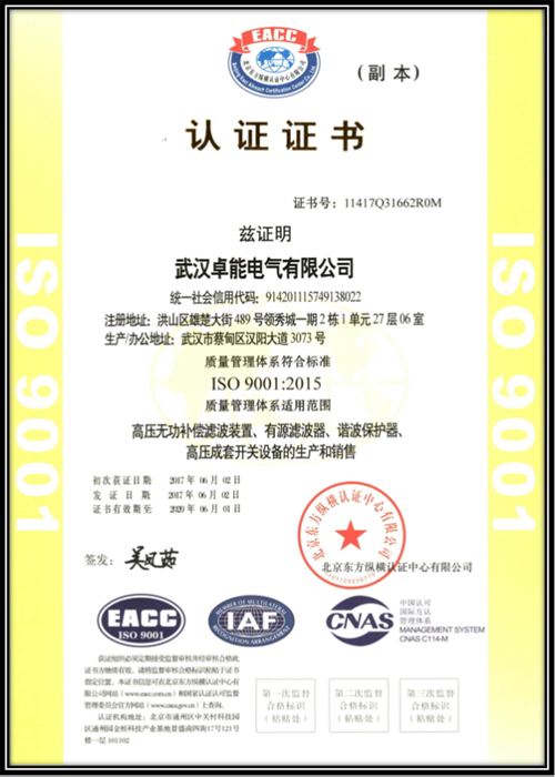 高壓質(zhì)量管理體系認(rèn)證證書副本
