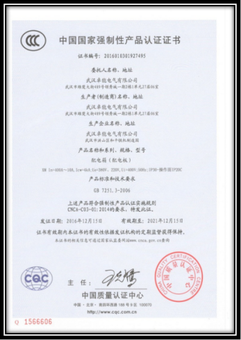 低壓成套開關(guān)設(shè)備認(rèn)證證書