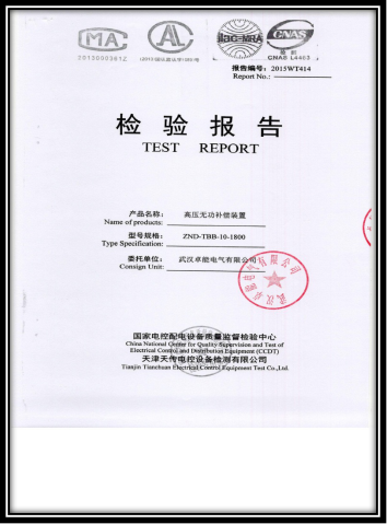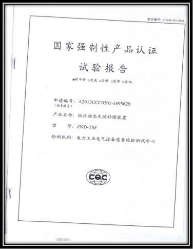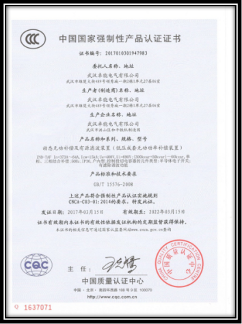 低壓動態(tài)無功補(bǔ)償裝置認(rèn)證證書