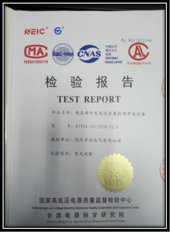 鎧裝移開式交流金屬封閉開關(guān)設(shè)備檢驗報告