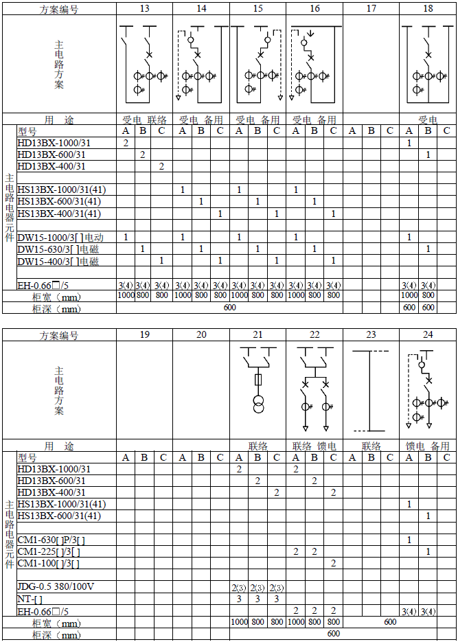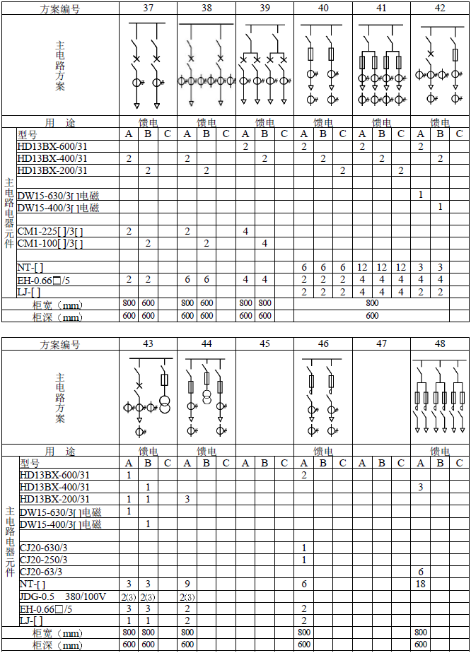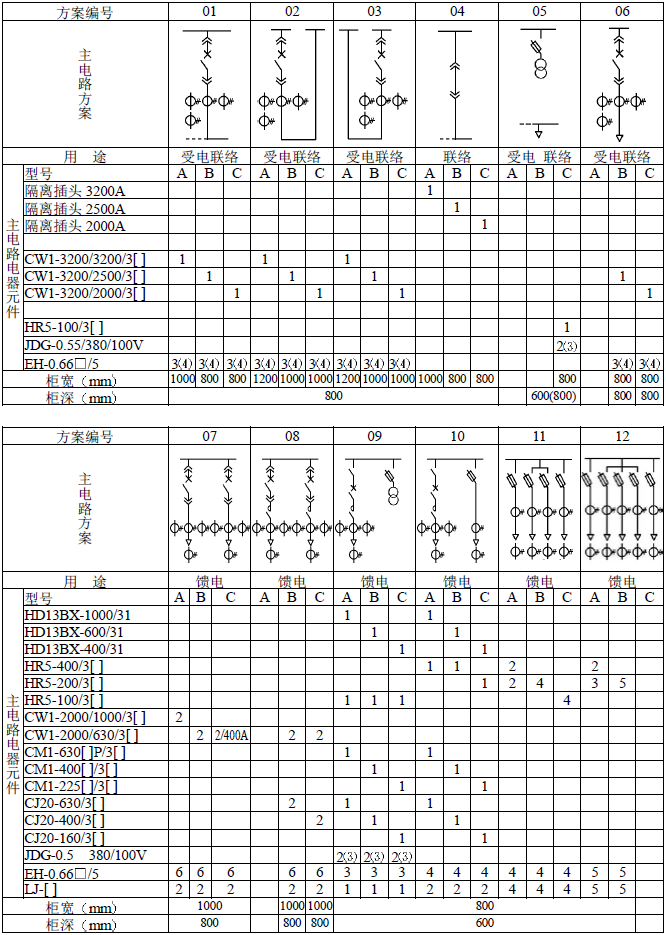 主電路方案是征求了廣大設(shè)計(jì)、使用部門的意見選編的,增加了發(fā)電廠需要的方案。額定電流增加到3150A,適合2000KV以下的配電變壓器選用。