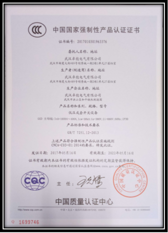 低壓成套開關(guān)設(shè)備認(rèn)證證書